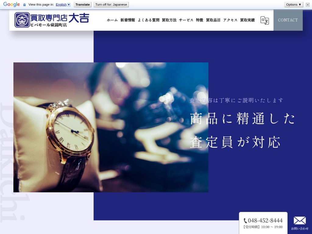 | 買取専門店大吉ビバモール蕨錦町店 | 宝石専門鑑定士が常駐、高額買取実績多数 | 埼玉県蕨市錦町1丁目12−1 ビバモール蕨 2階 |